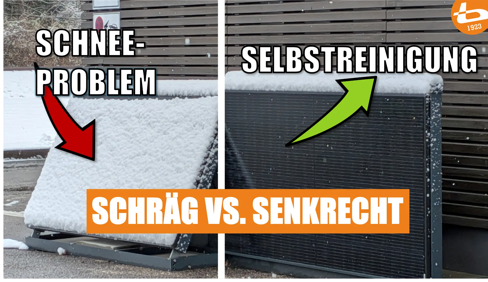 Auf dem Bild sieht man es deutlich: Das schräge Panel ist komplett schneebedeckt – die Stromproduktion geht gegen Null. Das senkrechte Panel hingegen bleibt frei. Da die Sonne im Winter sehr tief steht, liefern vertikale Module genau dann am meisten Energie, wenn man sie am dringendsten braucht.
